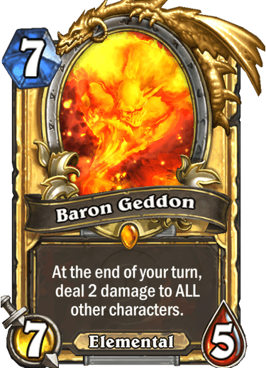 | Flavor Text | Baron Geddon was Ragnaros's foremost lieutenant, until he got FIRED. |