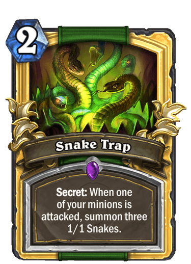 Text | <b>Secret:</b> When one of your minions is attacked, summon three 1/1 Snakes. |