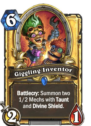 | Text | <b>Battlecry:</b> Summon two 1/2 Mechs with <b>Taunt</b> and <b>Divine Shield</b>. |