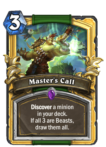 | Text | <b>Discover</b> a minion from your deck. If all 3 are Beasts, draw them all instead. |