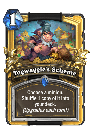 | Text | Choose a minion. Shuffle 1 (copy, copies) of it into your deck. <i>(Upgrades each turn!)</i> |