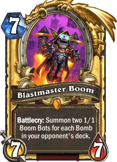 Text | <b>Battlecry:</b> Summon two 1/1 Boom Bots for each Bomb in your opponent's deck. |
