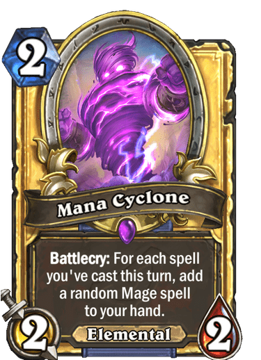 Text | <b>Battlecry:</b> For each spell you've cast this turn, add a random Mage spell to your hand. |
