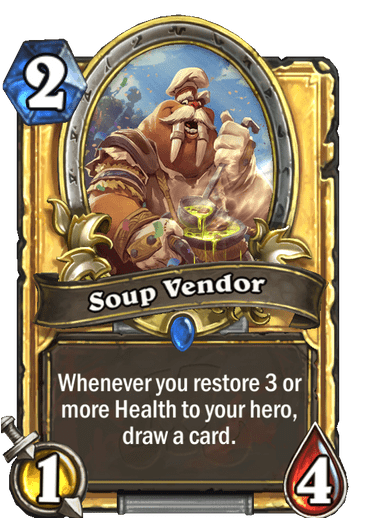 | Text | Whenever you restore 3 or more Health to your hero, draw a card. |