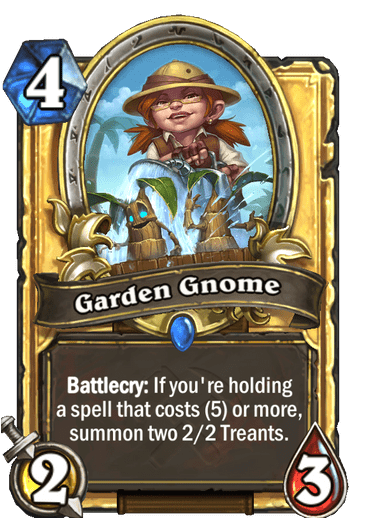 | Text | <b>Battlecry:</b> If you're holding a spell that costs (5) or more, summon two 2/2 Treants. |