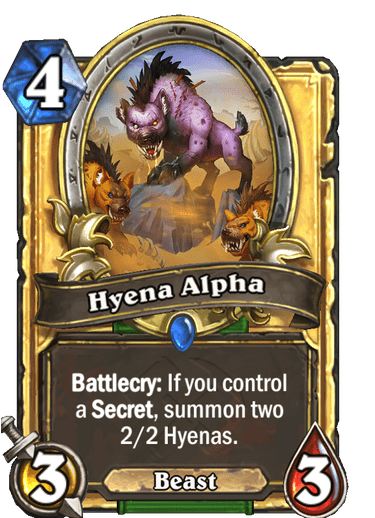 | Text | <b>Battlecry:</b> If you control a <b>Secret</b>, summon two 2/2 Hyenas. |