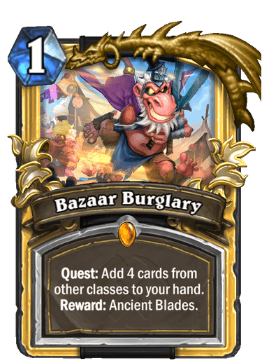| Text | <b>Quest:</b> Add 4 cards from other classes to your hand. <b>Reward: </b>Ancient Blades. |