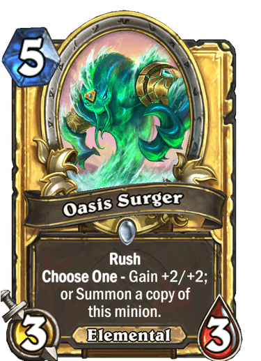Text | <b>Rush</b> <b>Choose One -</b> Gain +2/+2; or Summon a copy of this minion. |