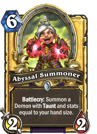 Text | <b>Battlecry:</b> Summon a Demon with <b>Taunt</b> and stats equal to your hand size. |