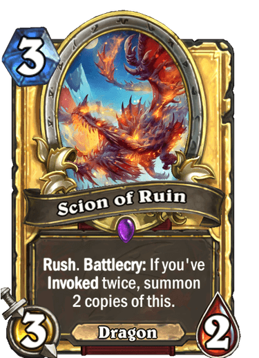 | Text | <b>Rush</b>. <b>Battlecry:</b> If you've <b>Invoked</b> twice, summon 2 copies of this. |