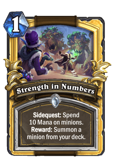 | Text | <b>Sidequest:</b> Spend 10 Mana on minions. <b>Reward:</b> Summon a minion from your deck. |