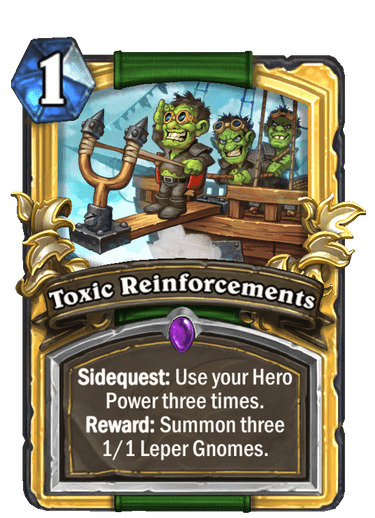 | Text | <b>Sidequest:</b> Use your Hero Power three times. <b>Reward:</b> Summon three 2/1 Leper Gnomes. |