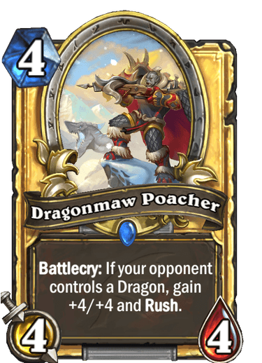 | Text | <b>Battlecry:</b> If your opponent controls a Dragon, gain +4/+4 and <b>Rush</b>. |