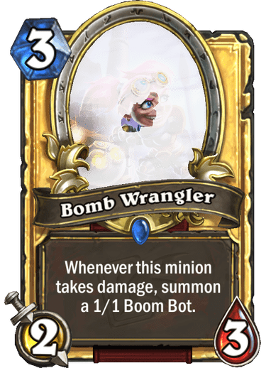Text | Whenever this minion takes damage, summon a 1/1 Boom Bot. |