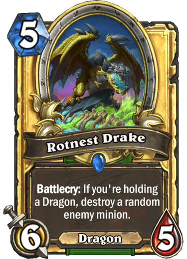 Text | <b>Battlecry:</b> If you're holding a Dragon, destroy a random enemy minion. |