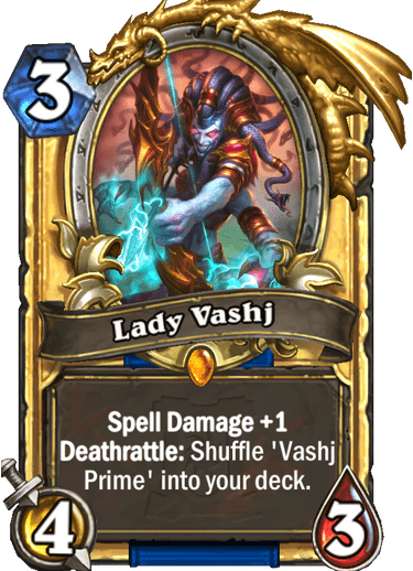 | Text | <b>Spell Damage +1</b> <b>Deathrattle:</b> Shuffle 'Vashj Prime' into your deck. |