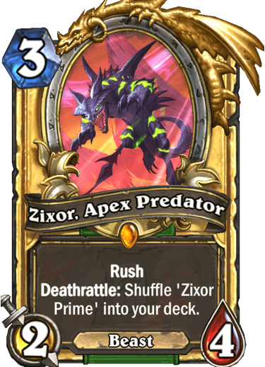 Text | <b>Rush</b> <b>Deathrattle:</b> Shuffle 'Zixor Prime' into your deck. |