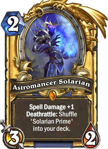 Text | <b>Spell Damage +1</b> <b>Deathrattle:</b> Shuffle 'Solarian Prime' into your deck. |