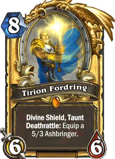 Text | <b><b>Divine Shield</b>,</b> <b>Taunt</b> <b>Deathrattle:</b> Equip a 5/3 Ashbringer. |